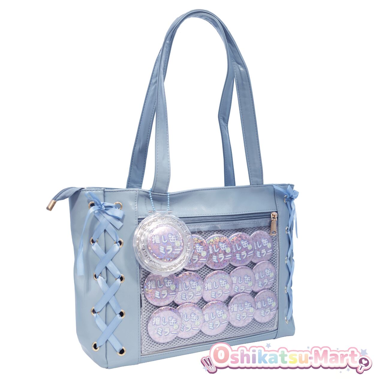 クリアポケット搭載:大切なアクリルスタンドや缶バッジを、傷や汚れから守りながらアピールできるクリアポケット付き。外側ファスナーから缶バッジをセットする部分を取り出せるので痛バッグの組み換えがとっても簡単でストレスなく楽しめます。