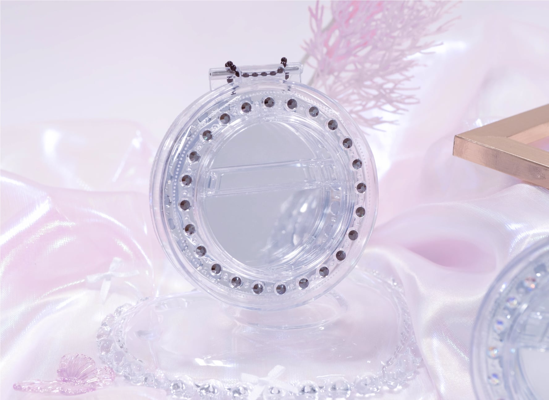 推し活に欠かせないアイテム「缶バッジ」を収納して持ち運べるコンパクトミラー。